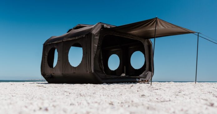 South African brand Alphago has made a name for itself in rugged, explore-anywhere camping trailers that haul big, inflatable living spaces up above. A small-packing, insta-inflatable tent seems a natural extension of that product area expertise, and the company outdoes itself with The Cube. The stretched, oversized glamping tent features an air tube frame designed to inflate within minutes at the push of a button. Want to make a cube city? Simply zip multiple tents together into a sprawling air-beam compound.