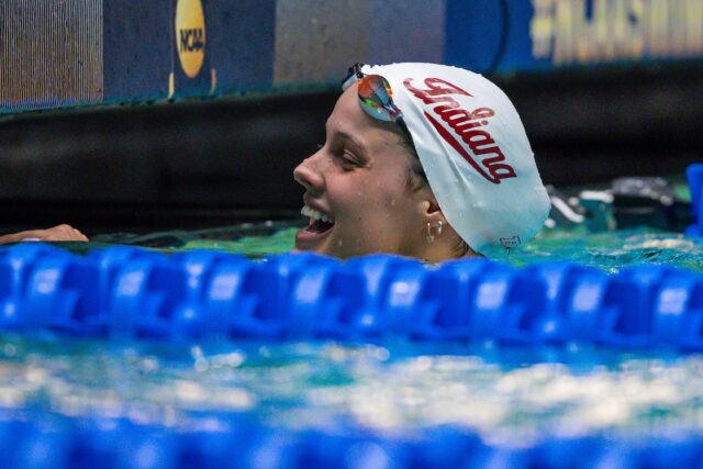 In her first year as a Pro swimmer, Indiana’s Anna Peplowski is starting to figure things out. After what she describes as a hard first semester of not being on the college team, Peplowski is now getting more used to the routine as a professional athlete, and the results are showing in the long-course pool. This weekend in Bergen, the Olympic medalist took 2nd in the 200 free (1:55.82) and won the 200 back (2:08.96). She’s still got the 400 Free/100 Back double to race tonight.