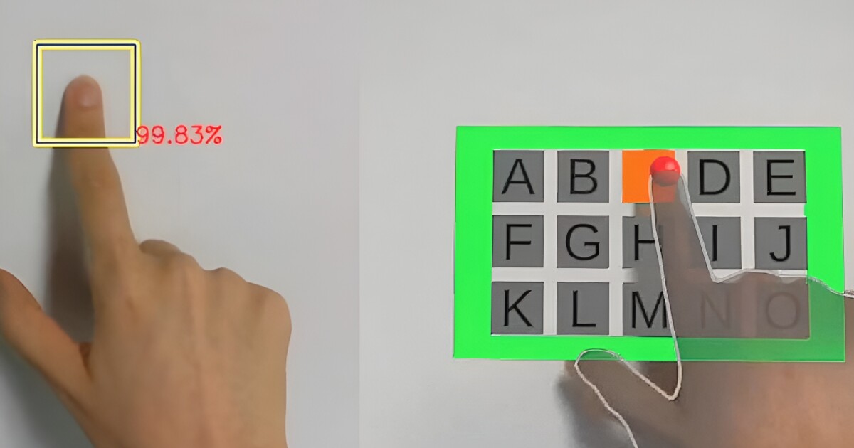 When blanching is detected, it lets AI-based algorithms know when and where fingertip contact has occurred relative to a virtual touch panel that is being projected onto that surface. The AR software utilizing that panel can then respond accordingly.