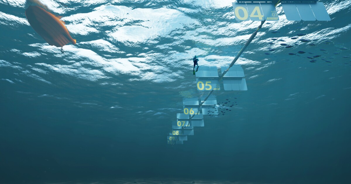 Underwater sails move back and forth as the waves pass