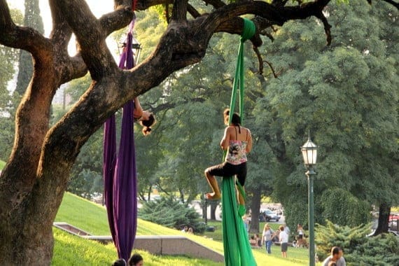 We took a long stroll from our flat in Microcentro to get to Malba (Museo America Latina Buenos Aires) through a series of lively parks. On a grassy knoll filled with people drinking mate tea (we cannot begin to explain what a cultural phenomenon this is–no one leaves home without their thermos, gourd cup, tea leaves, and straw), playing music, and even practicing acrobatics up a tree.