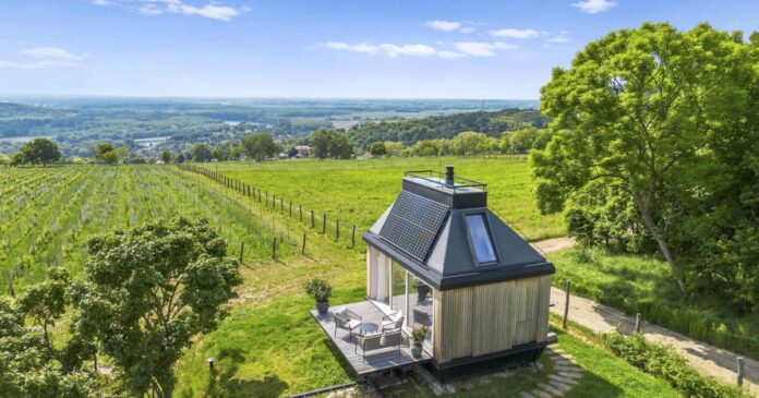 This off-grid cabin-style tiny house is seriously small, with a floorspace of just 20 sq m (215 sq ft). However, despite its compact dimensions, it has been expertly designed to provide everything needed for a short stay.