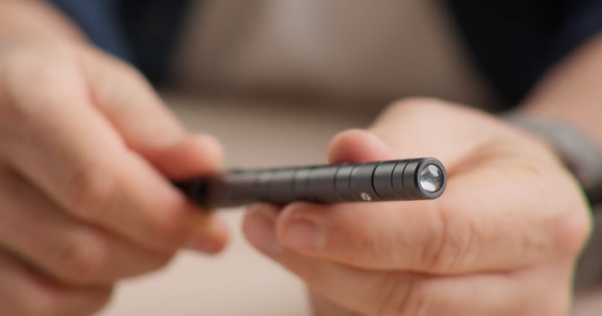 We suppose even more than a writing pen, the fully equipped Pockitrod looks like a pen flashlight. And it is … its front end cap houses a small 10-lumen LED flashlight optimized for shining light in tight, dark spaces. In fact, the flashlight module removes as a much smaller cylinder, complete with a magnetic base that can attach to a metal surface to serve as a work light. It can also attach to the metal Pockitrod body to clip on a shirt pocket, hat brim or belt for hands-free use.
