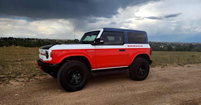 The tri-tone color of the 2025 Ford Bronco Stroppe is a good call back to the red, white, and blue Stroppe models of the 80s