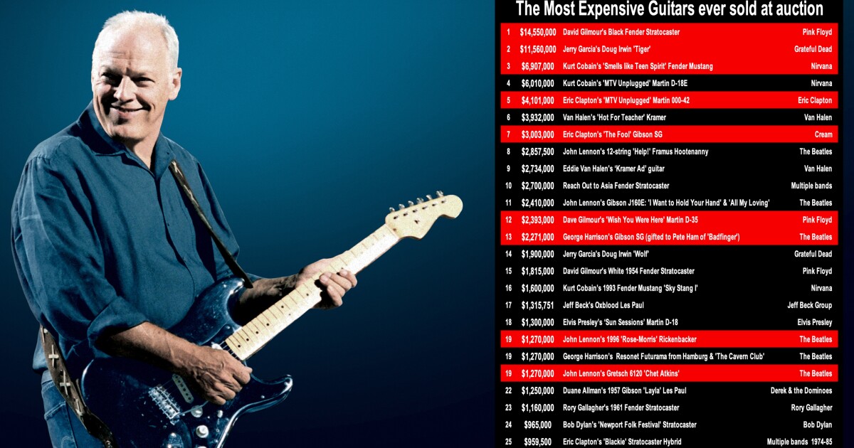 The biggest news was the return of Dave Gilmour’s “Black Strat” to the top of the heavyweight guitar price rankings, with a price of $14,550,000 – Irsay purchased the Fender Stratocaster in 2019 for what was then a world-record $3,975,000. Since then, the prices of elite collectible guitars have skyrocketed.