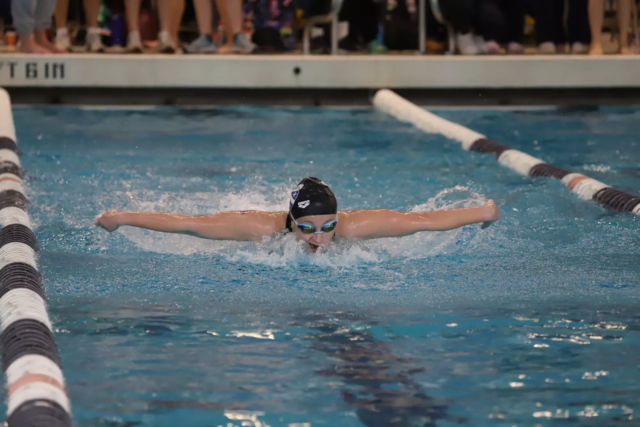 Hagg’s first win came in the 200 freestyle, clocking 1:53.66, finishing over two seconds ahead of the field. She later earned another event victory in the 500 free, clocking 5:04.00, Kenyon sophomore Nora Lee Brown finished just behind in 5:06.63.