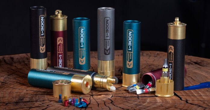 Yes, it looks like a 12-gauge shotgun shell, and yes, that is a bit of a gimmick. That said, the Node-1 is actually a pretty clever tool, as it packs multiple interchangeable functions into a single modular form factor.