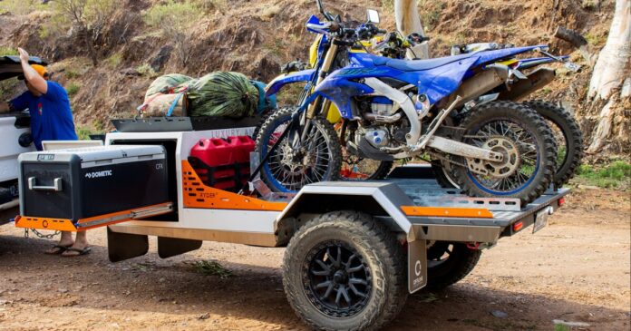 At some point, the sharp minds at Offline looked at the Ryder and wondered what would happen if they ripped off the upper rack and went with a bare, open flatbed. The first thing that happens is the trailer loses the ability to mount a rooftop tent over the dirt bikes or alternative cargo haul, but there’s always the tow vehicle roof for that. The next thing that happens is pretty beautiful: the trailer loses a bunch of high-riding, tree branch-snagging bulk and flips 340 kg (750 lb) from the tare weight to the payload side of the spec sheet.