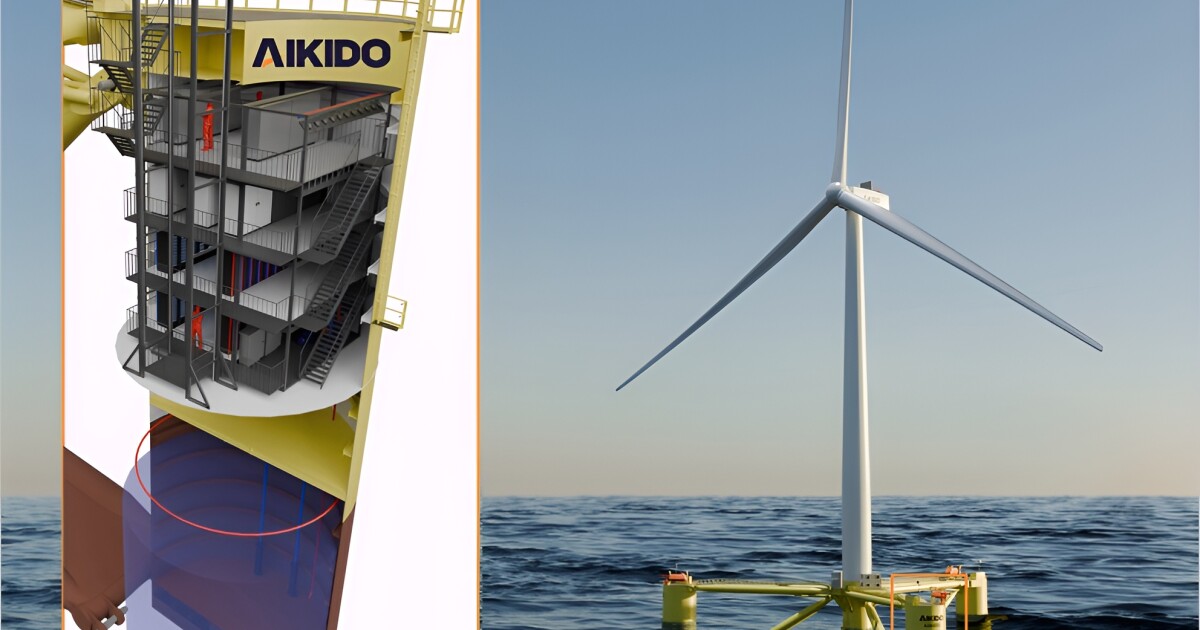 The startup, best known for developing floating offshore wind platforms, has proposed a concept called the AO60DC, which integrates a large offshore wind turbine, battery storage, and a modular data center into a single structure. Basically, a wind-turbine/data-center hybrid. Instead of building server farms on land and running long transmission lines from distant wind farms, Aikido’s design places computing infrastructure directly at the source of renewable energy, colocating power generation, computing, cooling, and energy storage on a single floating platform.