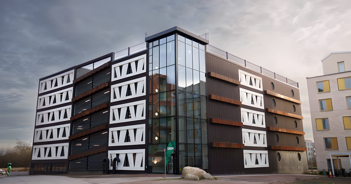 The resulting building, named the Niels Bohr parking garage, is located in the burgeoning Brunnshög district on the outskirts of Lund, Sweden. It consists of 365 parking spaces, spread over five floors, including 40 electric vehicle charging points and an on-site battery for energy storage.
