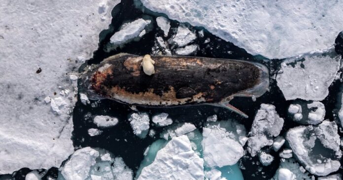“Polar bears are primarily seal predators, but as ice retreats in the summer and hunting becomes harder, they increasingly rely on opportunistic scavenging,” noted an accompanying statement with the image. “Near Svalbard, the ice-free season has lengthened by 20 weeks in the last 30 years. Sperm whales typically avoid ice-covered polar waters, so this carcass was a rare sight. Scientists speculate that after dying, the male sperm whale drifted north, carried by winds and currents. The photographer spent two days observing the scene from a small boat, capturing it by drone to reveal a scale difficult to grasp from sea level.”
