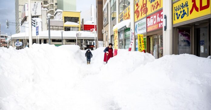As of Tuesday, the northern city of Aomori had 175cm (about 69 inches) of snow accumulated on the ground, more than double the average for this time of the year, according to NHK. On Monday, the city recorded as much as 183cm (72 inches) of snow accumulating in some areas, breaking the 40-year record of 181cm (71 inches) observed in 1986.