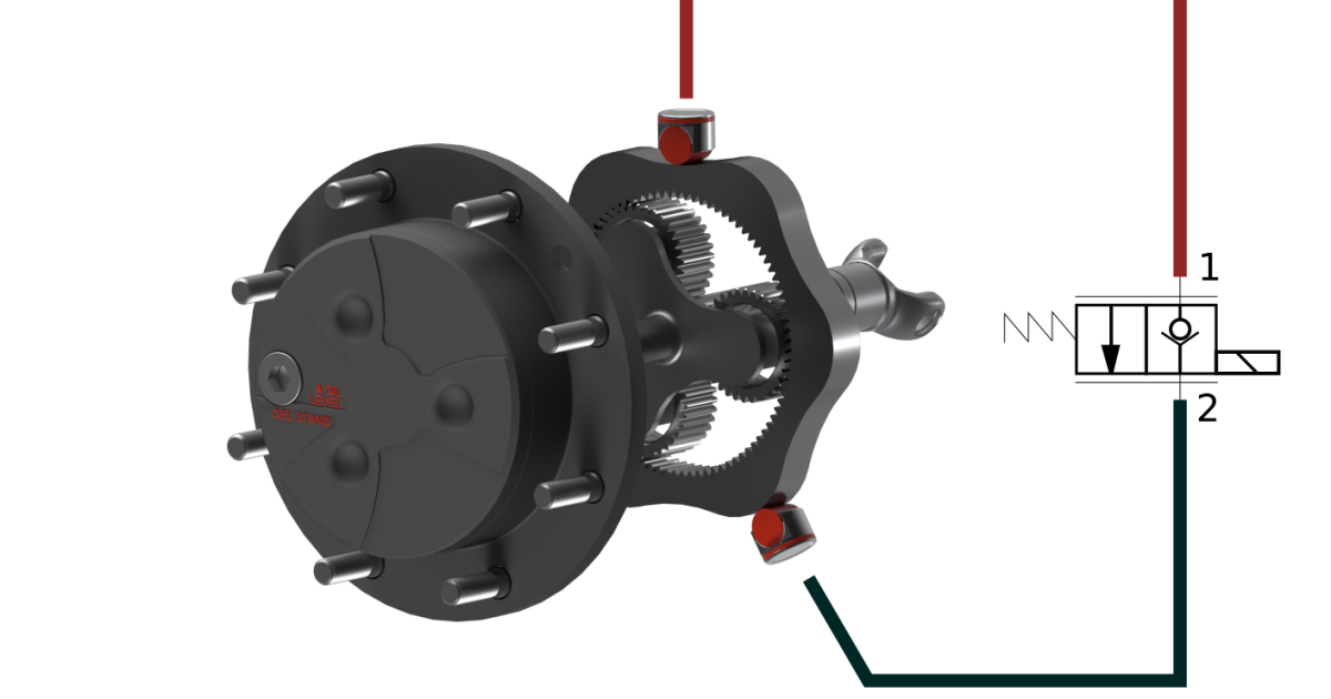What’s most innovative about the system is the way in which the ring gear is tied to the hub: it connects through a hydraulic circuit. The circuit can fix it in place or can let it rotate, and its rotation speed can be controlled.