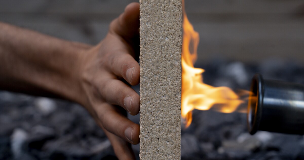 The material also exhibited excellent fire resistance, thanks to the struvite. When the mineral is heated, it reacts by breaking down and releasing water vapor and ammonia.