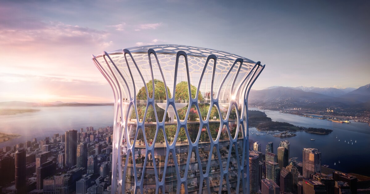 The skyscraper is slated for Vancouver, Canada, and is part of the larger Georgia & Abbott development in the city by the Holborn Group. The development is designed by Henriquez Partners Architects and is divided into three main elements.