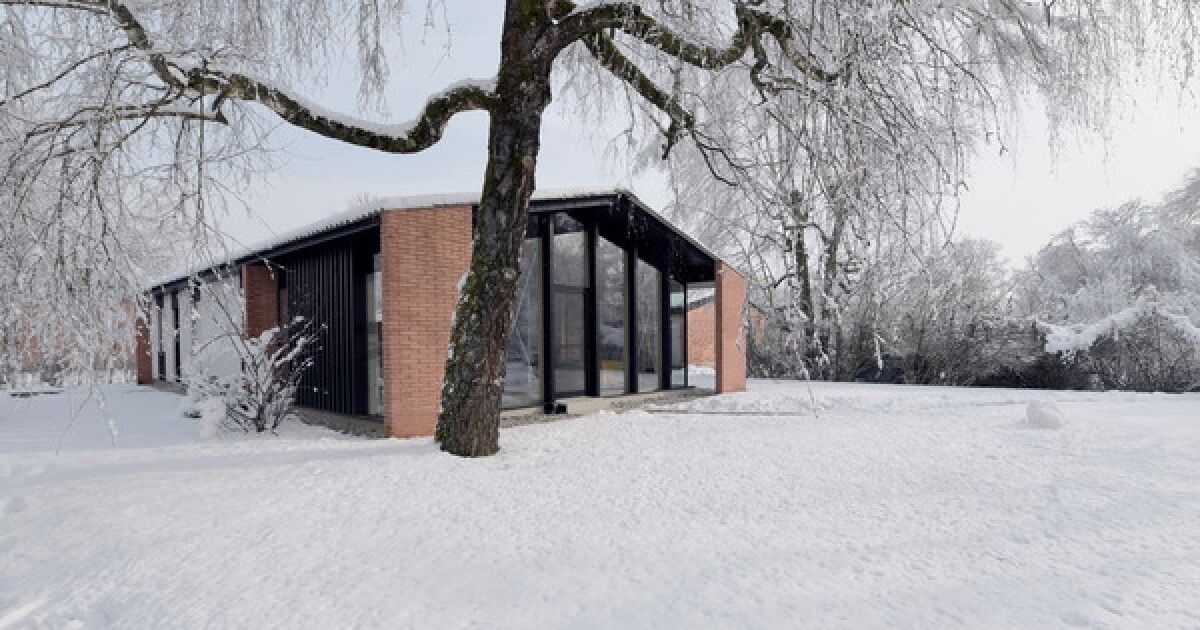 A new extension on the western side of the home faces the garden and introduces a secondary timber-and-glass volume. The addition provides extra living space and functions as a transitional zone, moderating light and temperature before it reaches the interior rooms. Brick columns reference the original façade, maintaining visual continuity, while a mature birch tree was preserved and included in the foundation design.