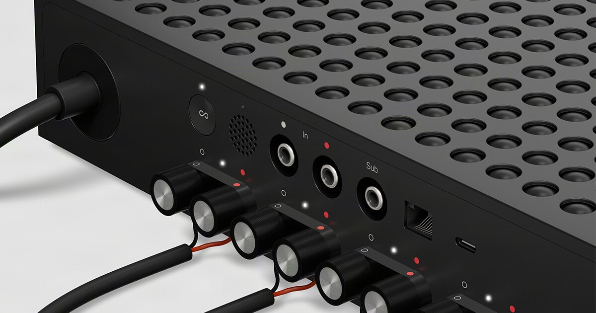 This Class D amp uses post-filter feedback to deliver consistent performance across different speaker loads, using a feedback loop placed after the output filter for real-time signal correction. Sonos says that equates to a clear sound with reduced distortion. The GaN power architecture keeps things cool within the unit, so it doesn’t need fans on the inside.