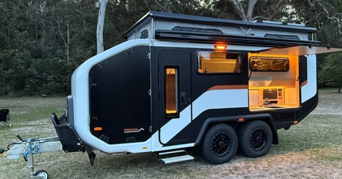 Australia’s Stockman Products got its start in what it calls Pod trailers, small, space-maximizing cargo trailers with tub-like plastic covers. It then expanded into some of the sharpest teardrop campers we’ve ever seen. It’s now growing once again, with its largest trailer yet. The all-new Trekka debuts as a smooth-edged dual-axle trailer with a complete camper interior, two kitchens, and dedicated, secure interior space for ebikes, surfboards or other adventure gear.