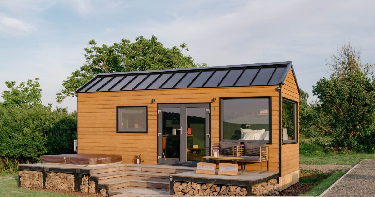 Designed by Romania’s Eco Tiny House, the Tiny Amsterdam is finished in engineered wood and is topped by a metal roof. Its footprint is around average for a Euro model but very small compared to some of the examples we see in North America, which can reach up to 15.85 m (52 ft). The home is based on a double-axle trailer but is shown here semi-permanently installed with a deck area that adds outdoor seating space and even a small jacuzzi.