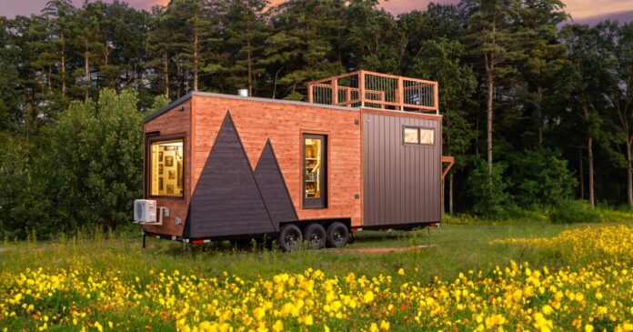The Park is designed by Backcountry Tiny Homes. It’s based on a triple-axle trailer and has a length of 30 ft (9 m), which is fairly small for a North American model but not overly so, and could be a good choice for those who want a home that’s suitable for full-time living, but can also travel. Its exterior is finished in knotty tongue-and-groove cedar, with metal accents.