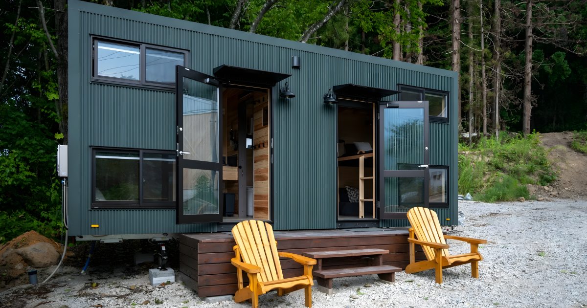 Designed by Japan’s Ikigai Collective, the Yamabiko is based on a trailer and looks fairly unassuming at first glance, aside from the fact it has two front doors instead of one. Its exterior is made up of utilitarian metal rather than the Japanese-style Shou Sugi Ban cladding you might expect given its popularity in the States.